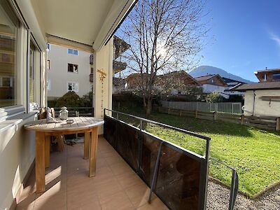Die sehr gut ausgestattete Hochparterrewohnung befindet sich sehr zentraler Lage am Sportplatzweg. Die Wohnung besteht aus einem Wohnraum mit Durchgang zur Küche und zum Essplatz, zwei Schlafzimmern, zwei Bädern, Garderobe, Vorraum und WC. Vom Balkon aus führt eine Treppe in den Garten. Zur Wohnung gehören ein Kellerraum und ein Autoabstellplatz.