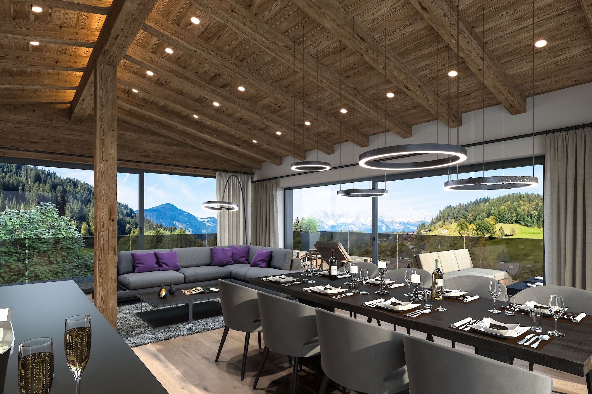 In sehr schöner Aussichtslage am Fuße des Hahnenkamms entstehen fünf exklusive Apartments mit hochwertiger Ausstattung und besonderer Wohnqualität. Das Zentrum von Kitzbühel ist in nur etwa zehn Gehminuten erreichbar, ebenso der Schwarzsee, der bequem zu Fuß erreichbar ist. Ein besonderes Highlight ist die Lage: Bei entsprechender Schneelage können Sie mit den Skiern direkt bis vor die Haustür fahren. Die Wohneinheiten überzeugen durch ihre exklusive Ausführung und Ausstattung: Aufzug, Kamin, Gas-Fußbodenheizung, Raffstores, hochwertige Eichenböden, moderne Bäder sowie Terrassen und Gartenanteile. Möblierung optional. Die Apartments begeistern mit eindrucksvollen Ausblicken auf den Wilden Kaiser, das Kitzbüheler Horn und den Lebenberg. Die Kombination aus Natur, Ruhe, Ski-in und fußläufiger Nähe zur Stadt sowie zum Schwarzsee macht dieses Projekt zu einer außergewöhnlichen Gelegenheit in Kitzbühel. Der Baubeginn ist für Sommer 2026 vorgesehen, die Fertigstellung Ende 2027.