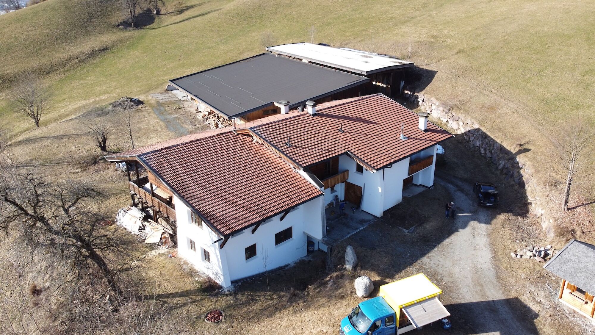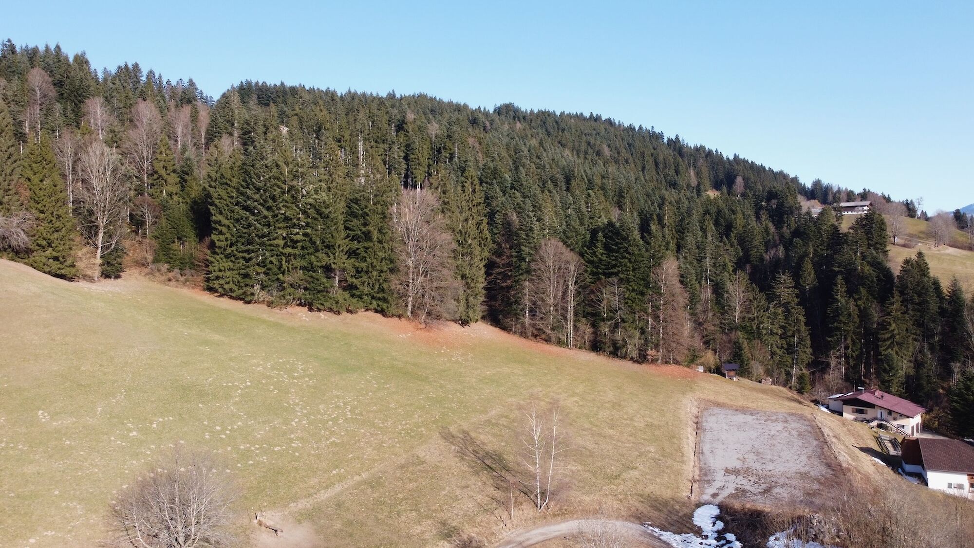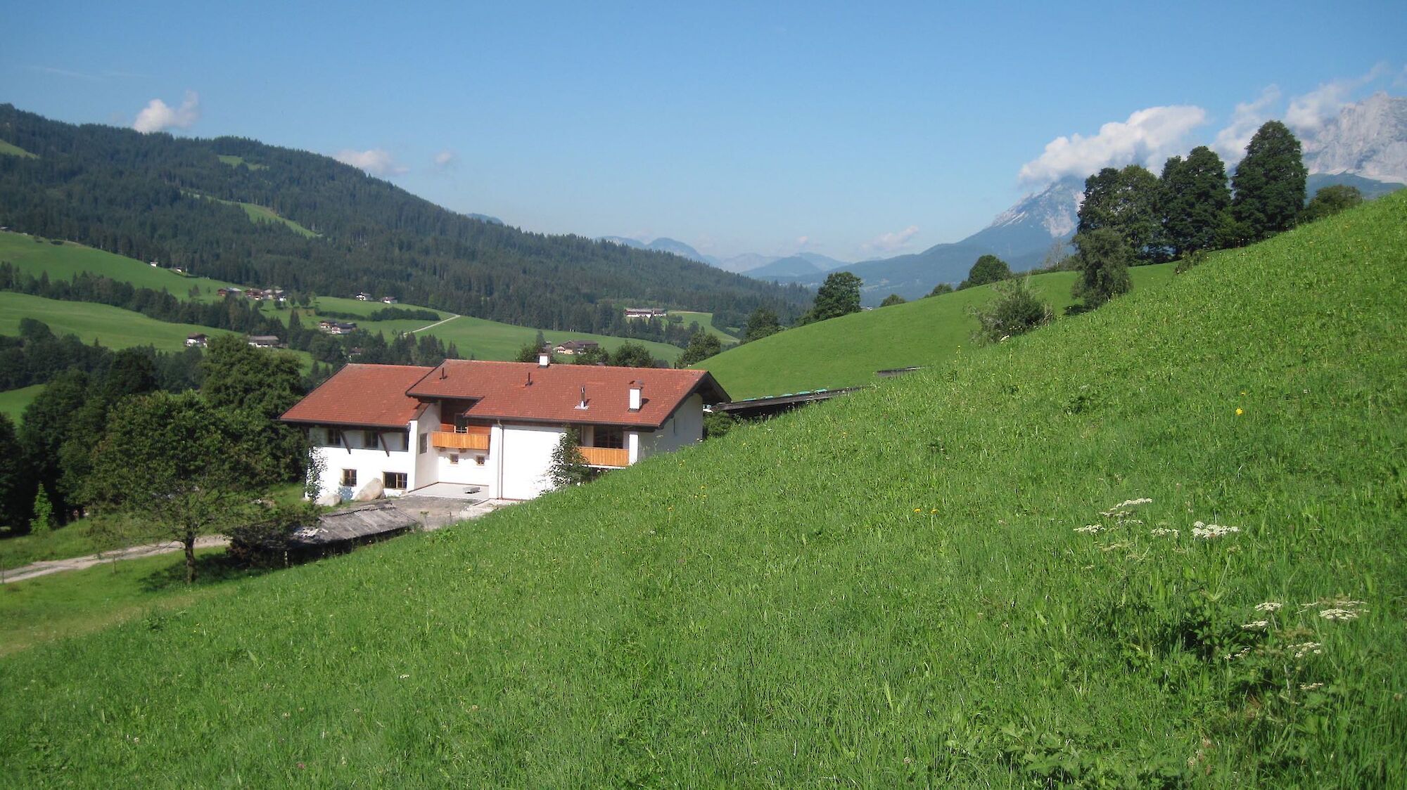Hoch über dem Tal, auf der Sonnseite, liegt das außergewöhnliche Anwesen in absoluter Alleinlage. Auf etwa 760 m Seehöhe öffnet sich ein atemberaubendes Panorama der Tiroler Alpen: Im Osten erhebt sich der markante Wildseeloder, im Süden das legendäre Kitzbüheler Horn und im Westen beeindruckt das mächtige Kaisergebirge. Die Ost-West-Ausrichtung garantiert ganztägige Sonneneinstrahlung und schafft eine Atmosphäre von Ruhe, Weite und natürlicher Schönheit. Der Einzelhof ist eingebettet in eine idyllische Kulturlandschaft mit rund 10 Hektar Grund etwa 7 Hektar Wiesen und 3 Hektar Wald. Fernab von Industrie und Gewerbe genießen Sie hier ein Höchstmaß an Privatsphäre und Naturverbundenheit. Das großzügige Wohngebäude mit rund 650m² Nutzfläche wurde nach konsequent bauökologischen Prinzipien errichtet und vereint nachhaltige Bauweise mit beeindruckender Großzügigkeit. Massive 50 cm starke Liapor-Naturblähtonmauern, hochwertige Dämmung und moderne Niedertemperatur-Fußboden- und Wandheizung schaffen ein gesundes und energieeffizientes Wohnklima. Bereits fertiggestellt sind unter anderem eine Einliegerwohnung (ca. 80 m²) sowie eine großzügige Hauptwohnung (ca. 150 m²). Ein weitläufiger Seminar- oder Wohnraum, Gästezimmer und zahlreiche Nebenräume eröffnen vielfältige Nutzungsmöglichkeiten, von exklusivem Wohnen bis hin zu Retreat-, Seminar- oder Gästekonzepten. Zur Liegenschaft gehört außerdem ein großzügig konzipierter Laufstall mit 11 Pferdeboxen, Heu- und Nebenräumen, mit einer Grundfläche von ca. 28 × 32 m. Ein vorhandener Reitplatz kann über Servitut genutzt werden.