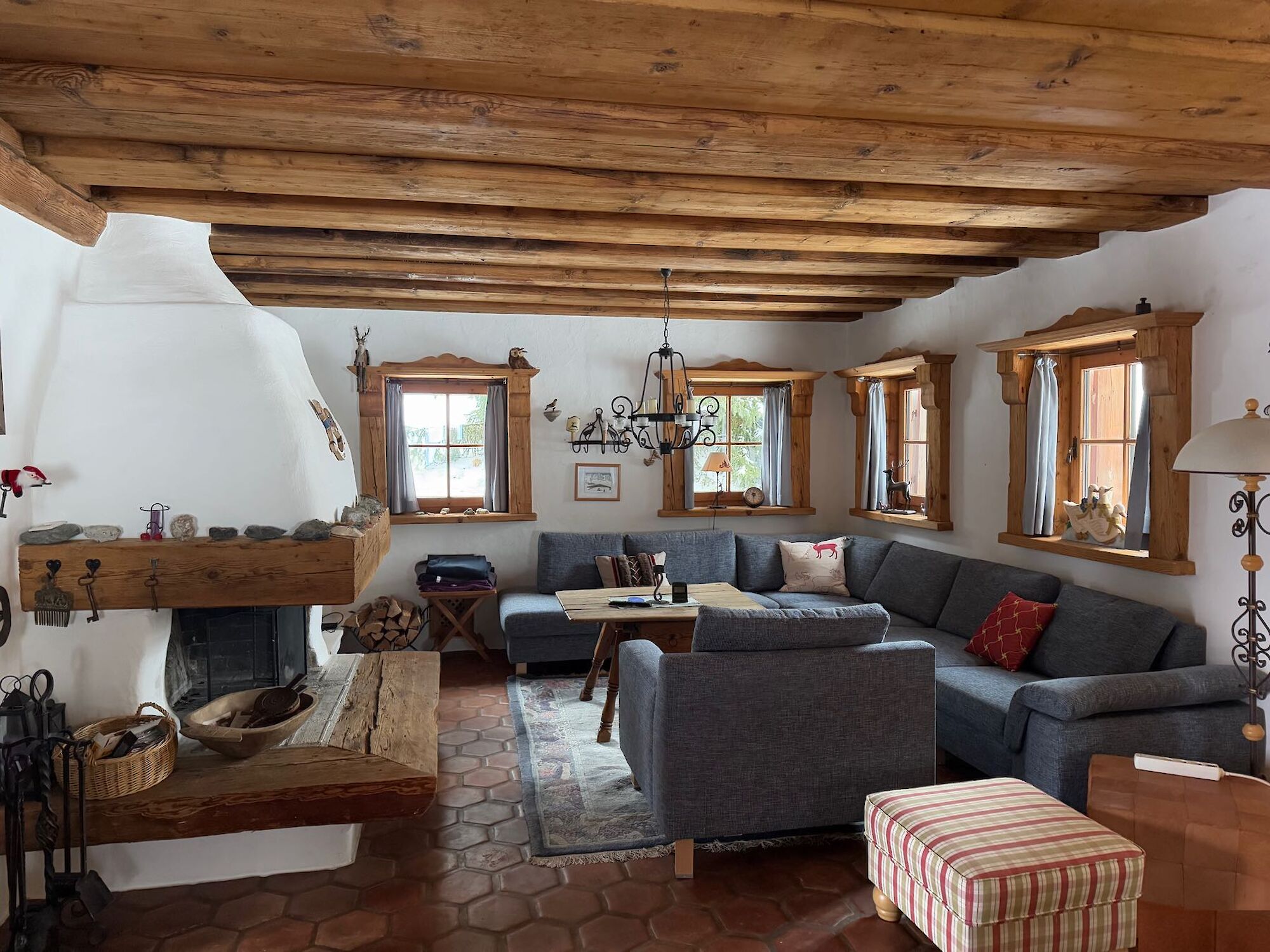 Das Haus bietet einen großzügigen Wohn- und Essbereich mit Kamin, einen Wintergarten, eine voll ausgestattete Küche, ein Masterschlafzimmer mit Kachelofen im Dachgeschoss, zwei weitere Schlafzimmer, drei Bäder, ein Büro, eine separate Gästewohnung, einen Wellnessbereich mit Sauna, einen großen Hobbyraum, eine Waschküche sowie eine Garage. Beheizt wird das Haus mit einer neuen Wärmepumpe.