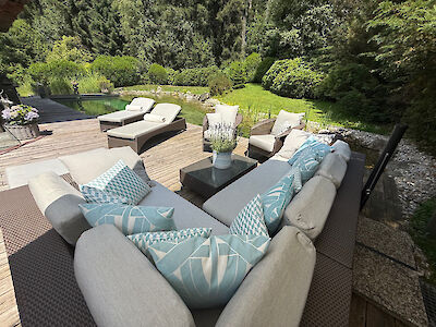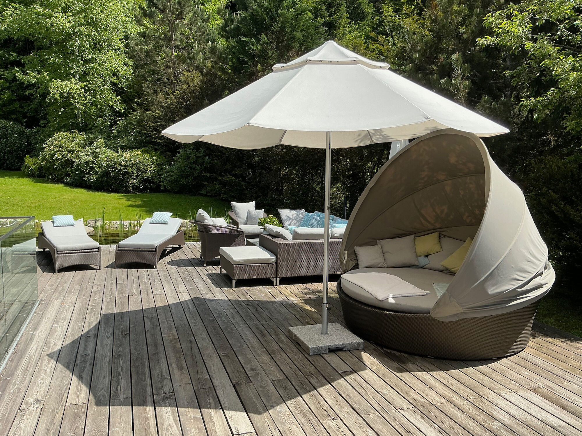 The well-maintained garden with an 8 x 4 meter natural pool and a huge sun terrace with comfortable garden furniture completes the living experience and offers ample space to relax outdoors or in the adjacent cozy party house.