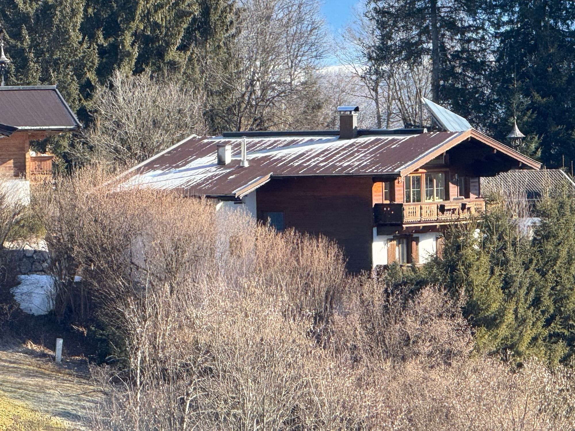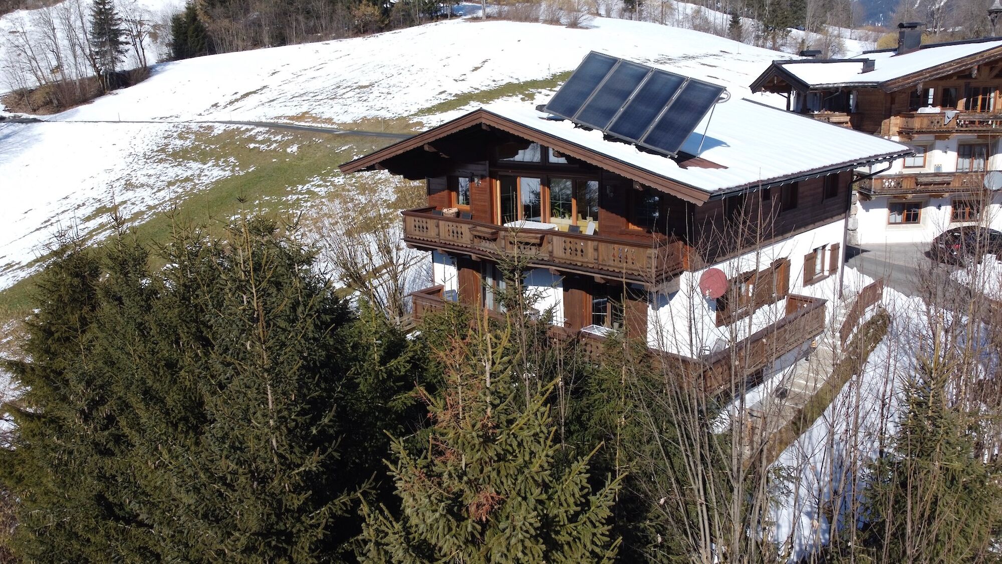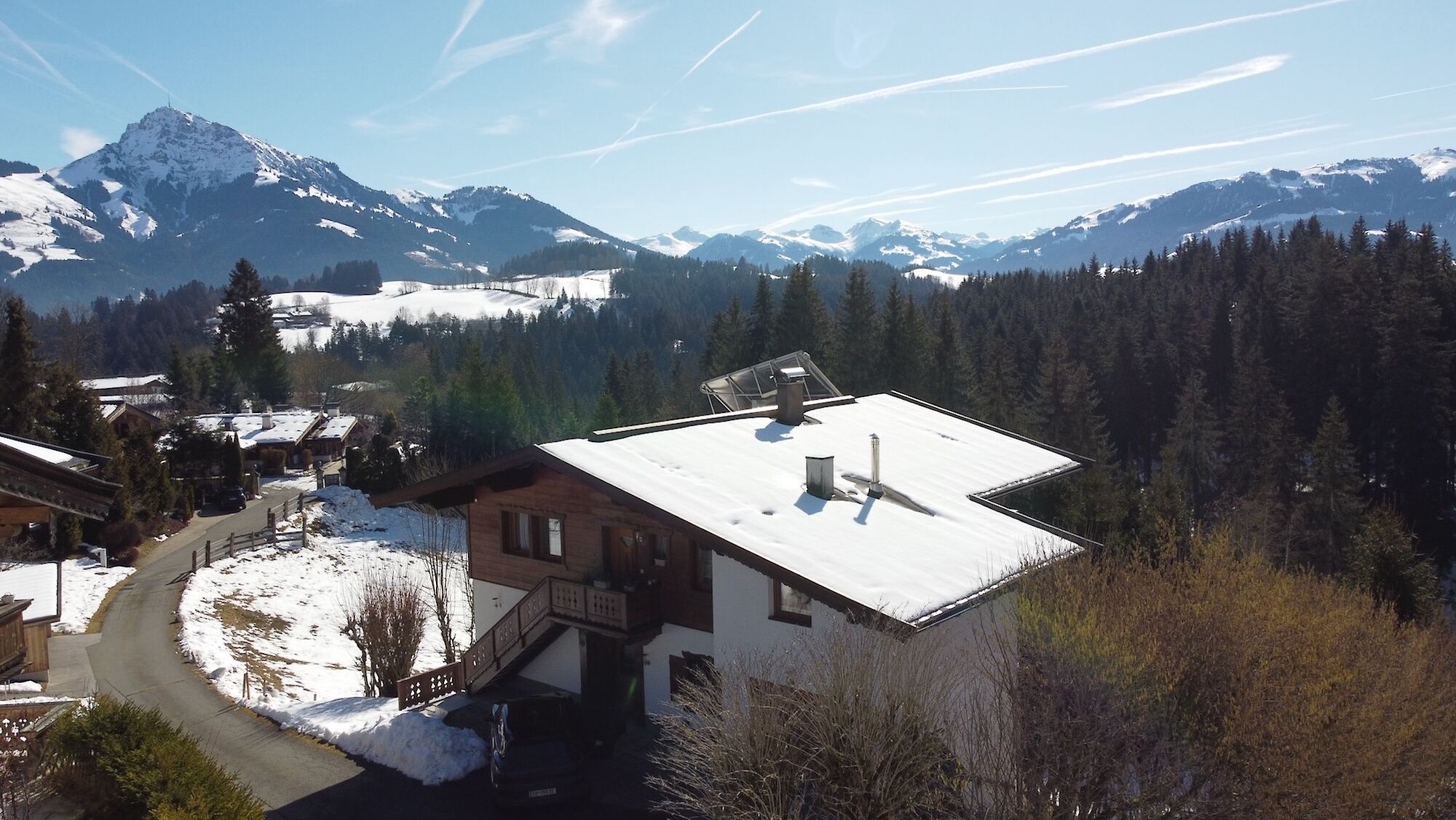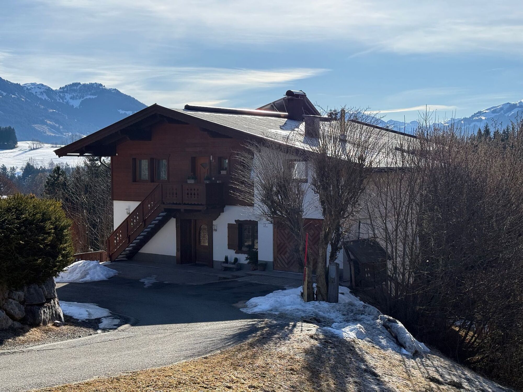 This country house enjoys an absolutely unobstructed, quiet, and sunny location on the Astberg in Reith near Kitzbühel – one of the most sought-after residential areas in the region. From here, you can enjoy breathtaking panoramic views of the Wilder Kaiser, the Kitzbüheler Horn, the Hahnenkamm, and the imposing southern mountains – a view that will delight you in every season. The property currently comprises two separate apartments. Each apartment has a living room with a kitchen, two bedrooms, a bathroom, and a separate toilet. The house has a full basement. The basement is completely open on the south side, making this area ideal for conversion into additional living space. The house can also be used as a single-family home.