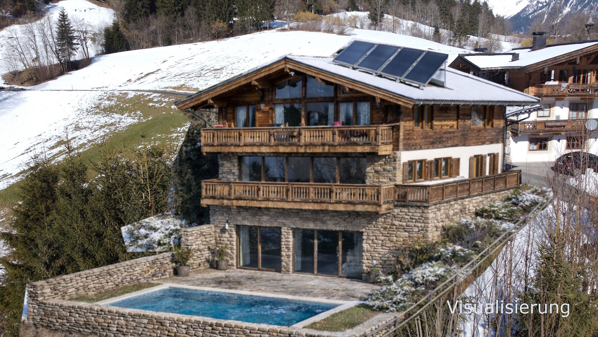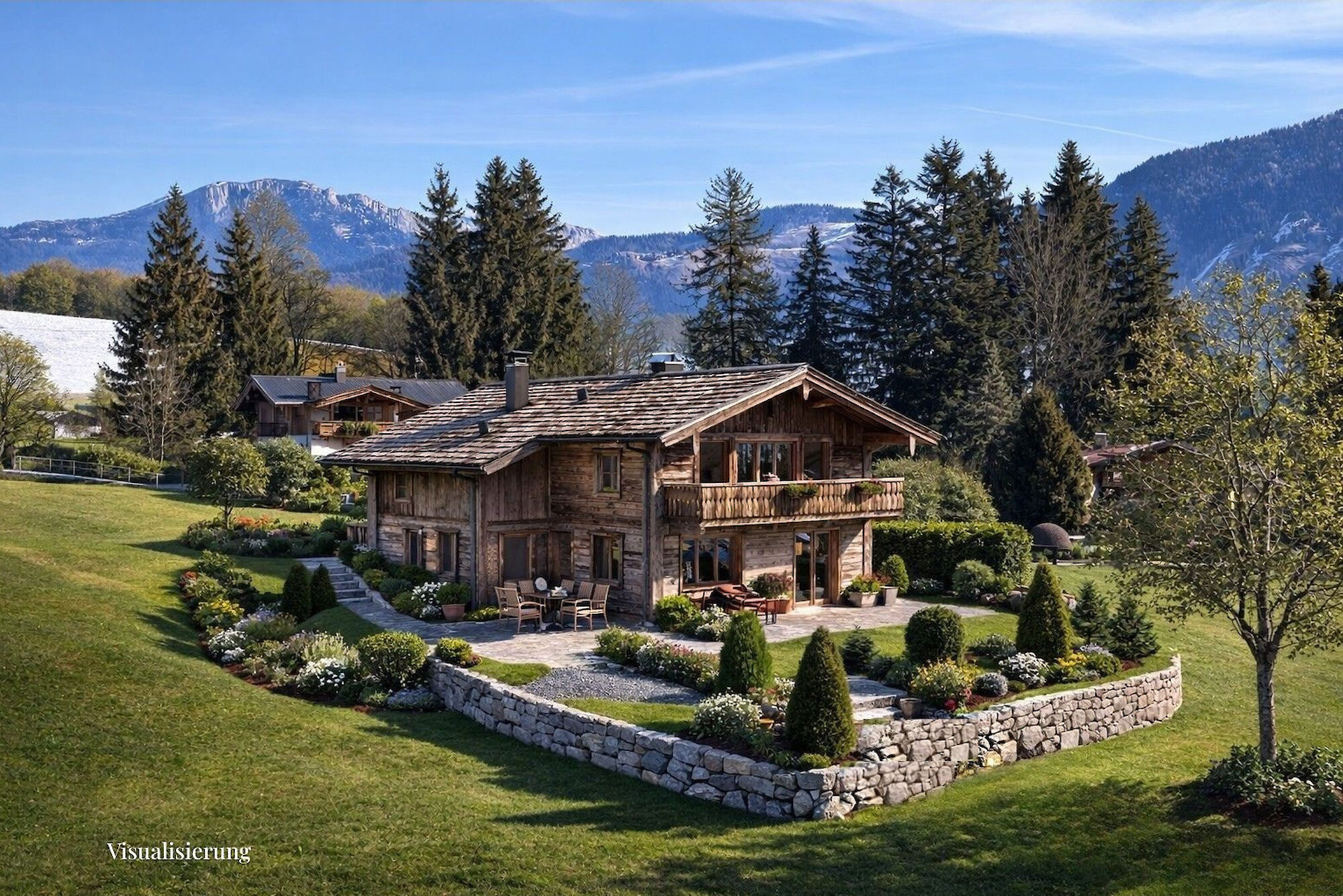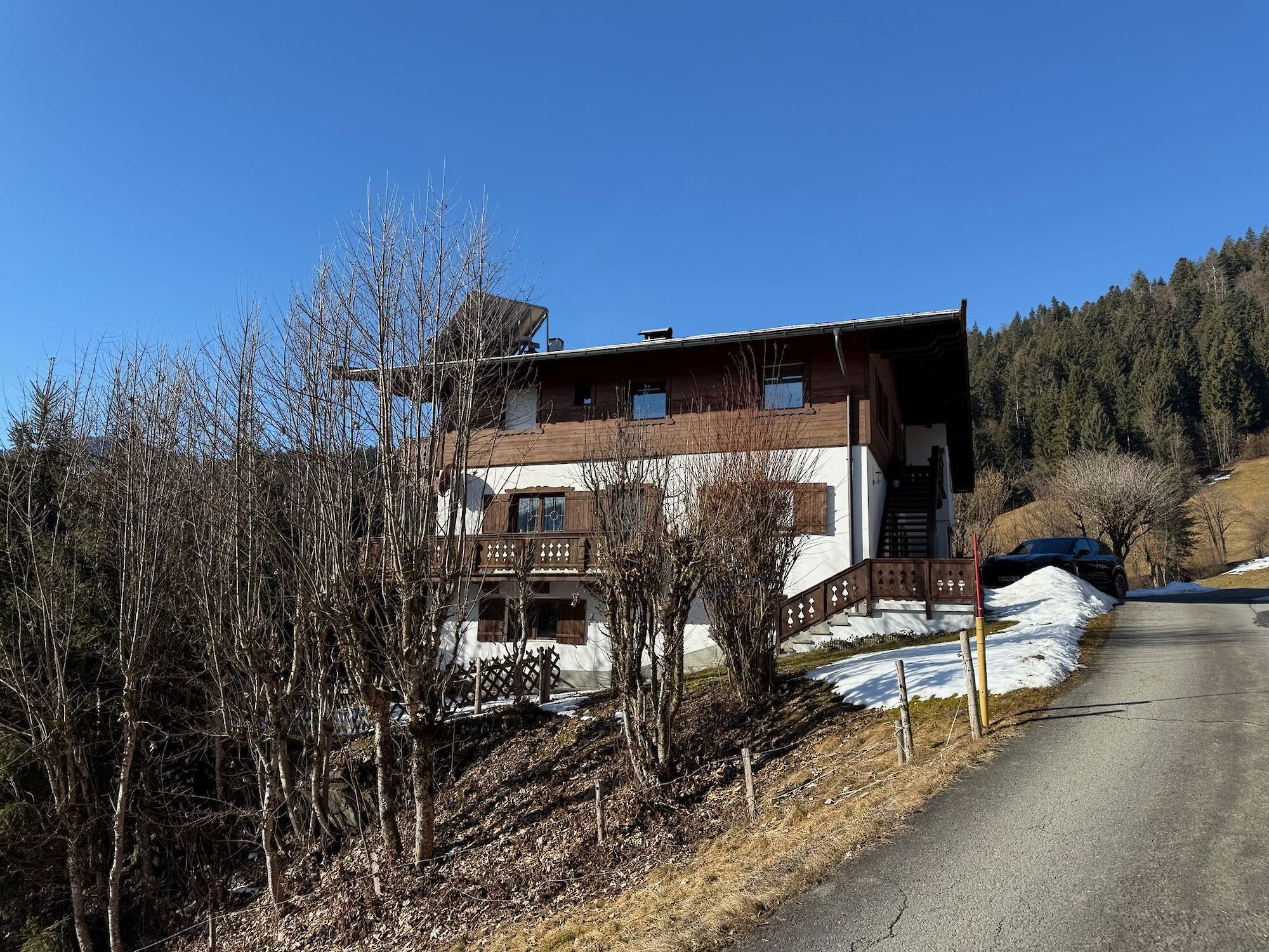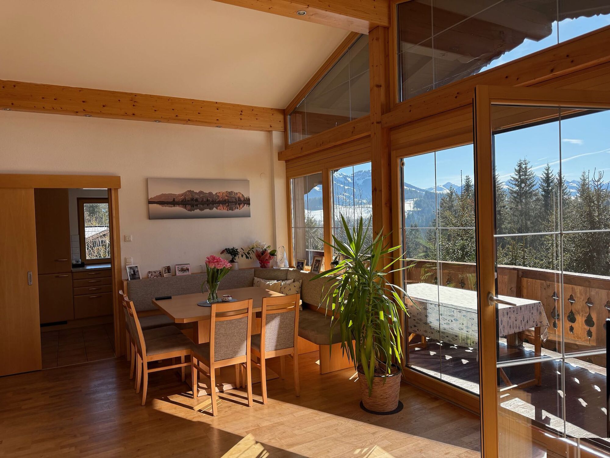 This country house enjoys an absolutely unobstructed, quiet, and sunny location on the Astberg in Reith near Kitzbühel – one of the most sought-after residential areas in the region. From here, you can enjoy breathtaking panoramic views of the Wilder Kaiser, the Kitzbüheler Horn, the Hahnenkamm, and the imposing southern mountains – a view that will delight you in every season. The property currently comprises two separate apartments. Each apartment has a living room with a kitchen, two bedrooms, a bathroom, and a separate toilet. The house has a full basement. The basement is completely open on the south side, making this area ideal for conversion into additional living space. The house can also be used as a single-family home.