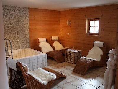 A private wellness area within the house – featuring sauna, plunge pool and relaxation room – provides a dedicated space to recharge after a day outdoors.