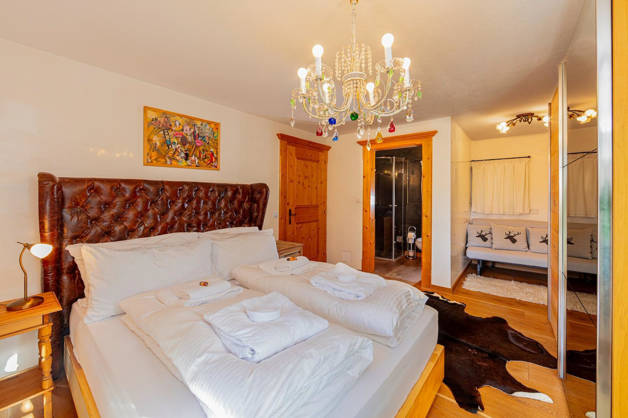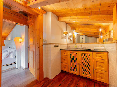The separate country-style kitchen balances functionality with authentic alpine character.