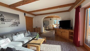 The apartment is located in a sunny position with view onto the Wilder Kaiser and the Kitzbüheler Horn. it consists of a living room with fire place, an open kitchen with dining area, a master bedroom with wardrobe and bathroom as well as another bedroom, a gueat toilet and a home office, which can be used as guest room. The apartment contains a generous terrace with whirlpool, a spa area with sauna, steam bath and relaxing zone, a balcony and several storage rooms. Two parking lots in the garage are available.